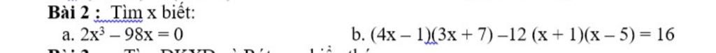 `<=>2x=0` hoặc `x-7=0` hoặc `x+7=0`