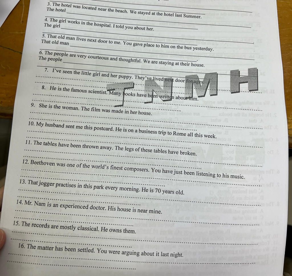 5. That old man lives next door to me. You gave place to him on the bus yesterday.