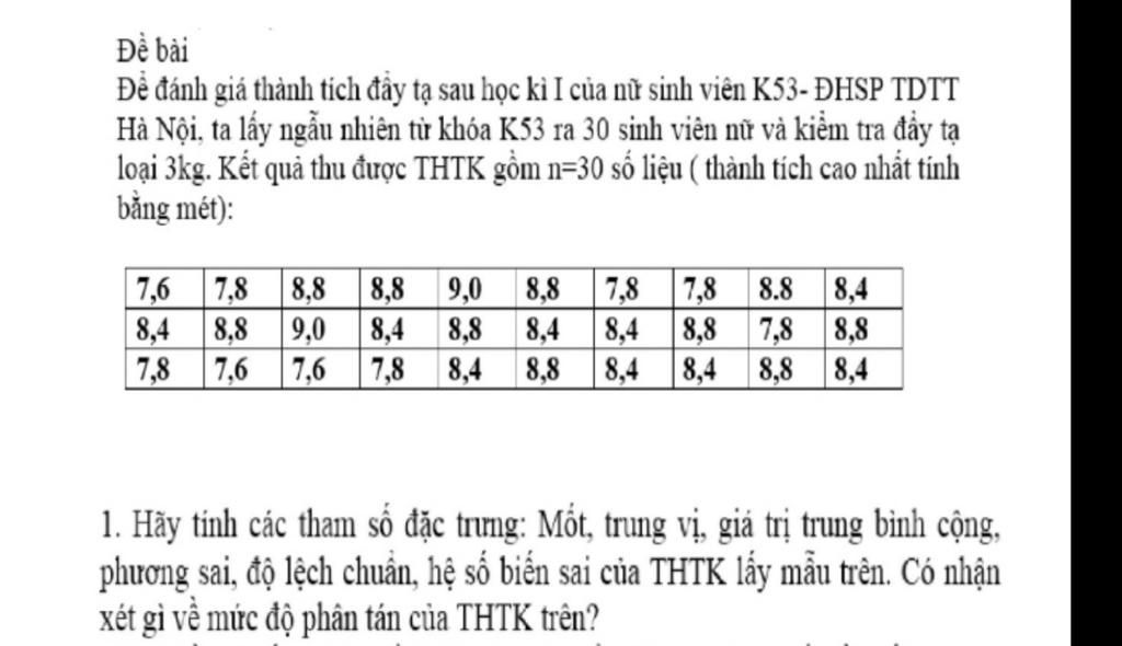 Hà Nội. ta lấy ngẫu nhiên từ khóa K53 ra 30 sinh viên nữ và kiểm tra đẩy tạ