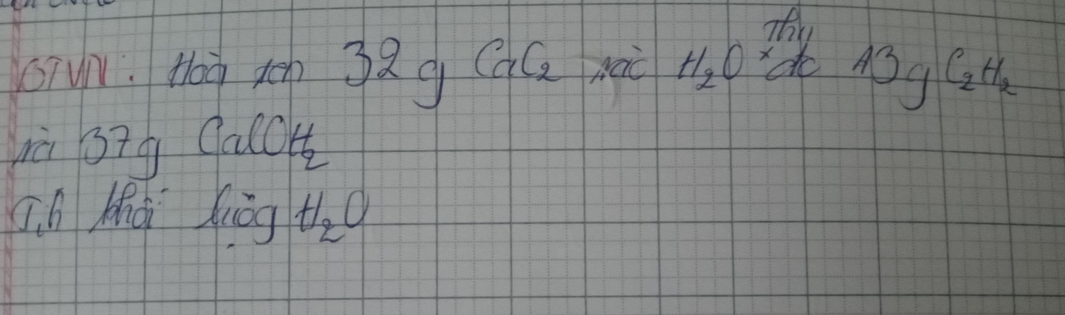 PTHH : `CaC_2 + 2H_2O \to Ca(OH)_2 + C_2H_2`