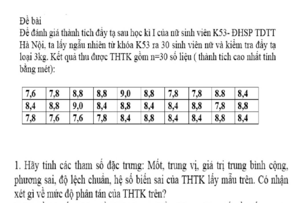 Hà Nội. ta lấy ngẫu nhiên từ khóa K53 ra 30 sinh viên nữ và kiểm tra đẩy tạ
