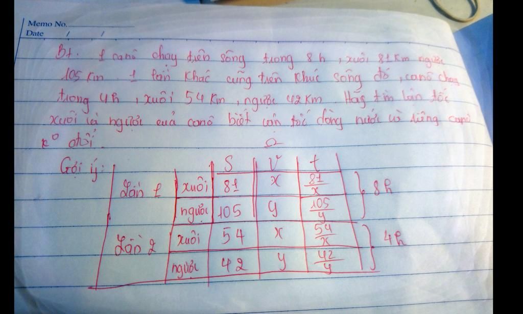 xuôi 54km, ngược 12 km Hãy tìm Lên tốc