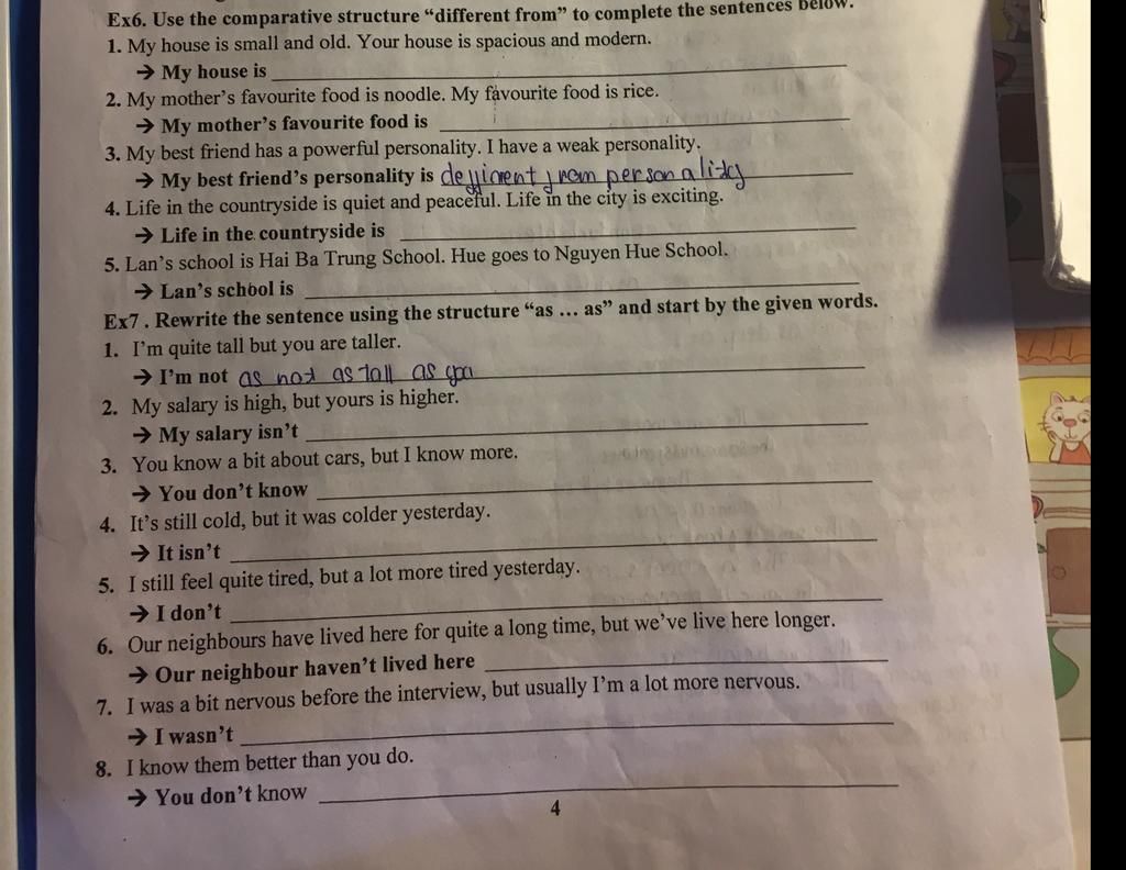 Ex6. Use the comparative structure "different from" to complete the sentences below.