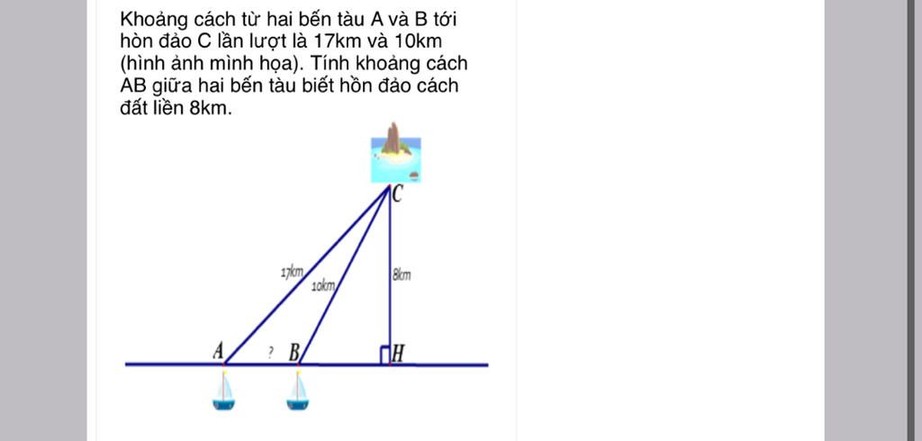 Khoảng cách $AB$ giữa hai bến tàu là: