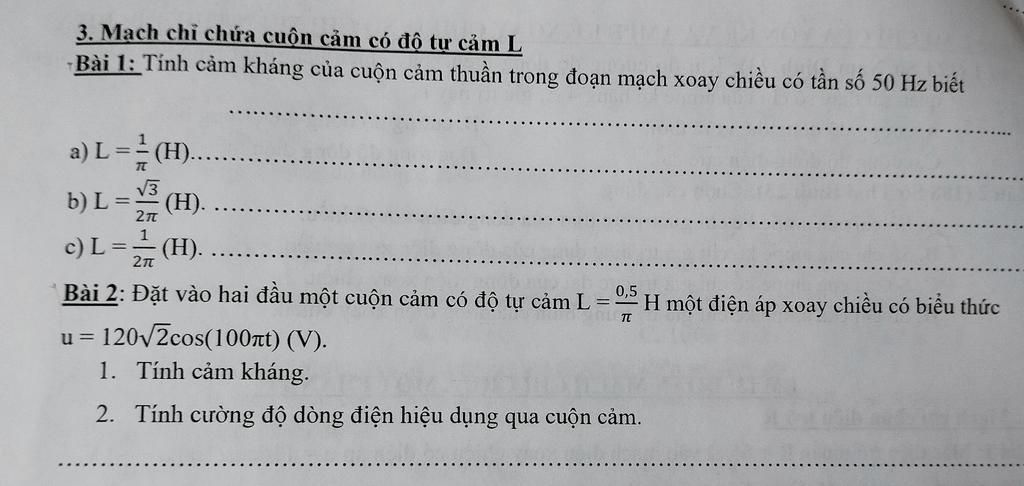 Bài 2: Đặt vào hai đầu một cuộn cảm có độ tự cảm L =