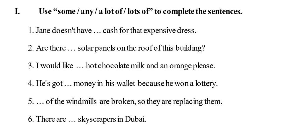 6. a lot of - There are a lot of skyscrapers in Dubai.