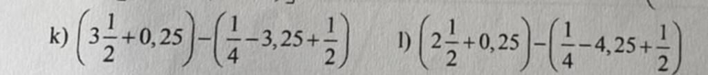 `k)(3 1/2+0,25)-(1/4-3,25+1/2)`