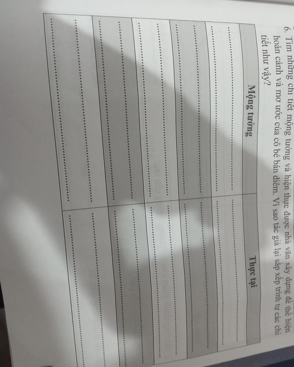 6. Tìm những chi tiết mộng tưởng và hiện thực được nhà văn xây dựng để thể hiện