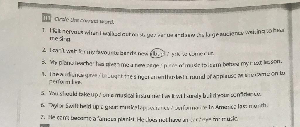 III Circle the correct word.