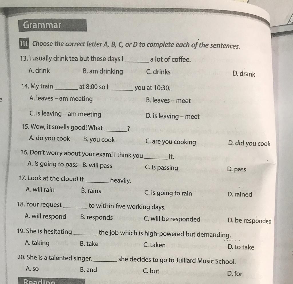 III Choose the correct letter A, B, C, or D to complete each of the sentences.