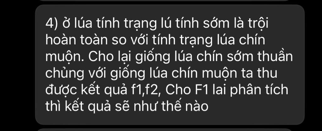 Tỉ lệ 3:1 lúa chín sớm là 3 , lúa chín muộn là 1