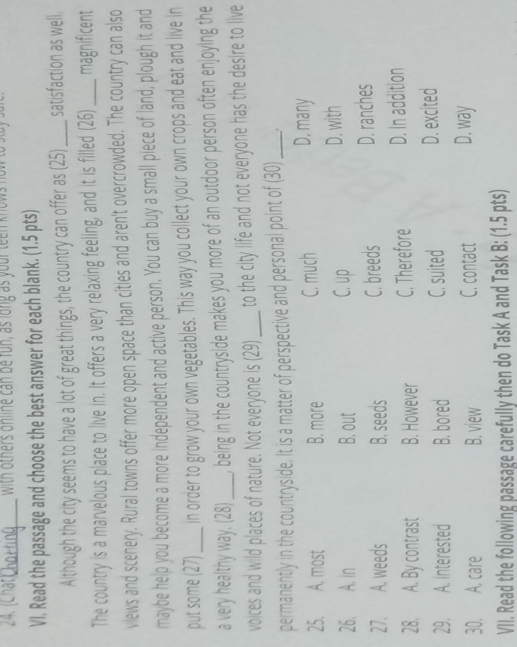VI. Read the passage and choose the best answer for each blank. (1.5 pts)