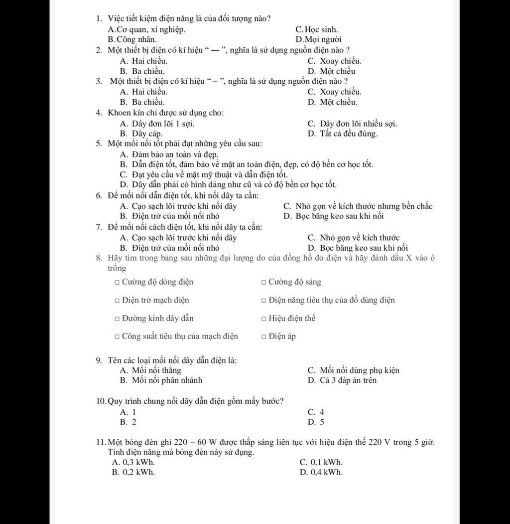 1. Việc tiết kiệm điện năng là của đối tượng nào?