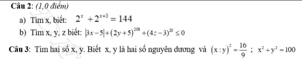 Câu 3: Tìm hai số x, y. Biết x, y là hai số nguyên dương và (x:y)