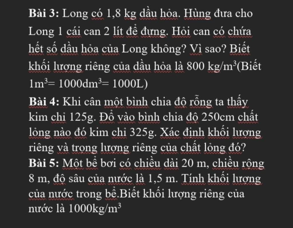 `bb3.` Thể tích dầu hỏa là: