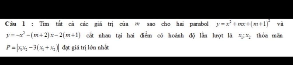 y=-x^-(m+2)x-2(m+1) cắt nhau tại hai điểm có hoành độ lần lượt là Xị;X, thỏa mãn