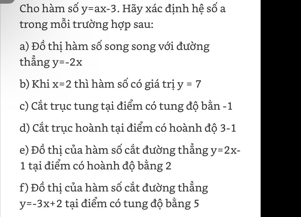 b) Thay x = 2 ; y = 7 vào hàm số y = ax - 3 ta được:
