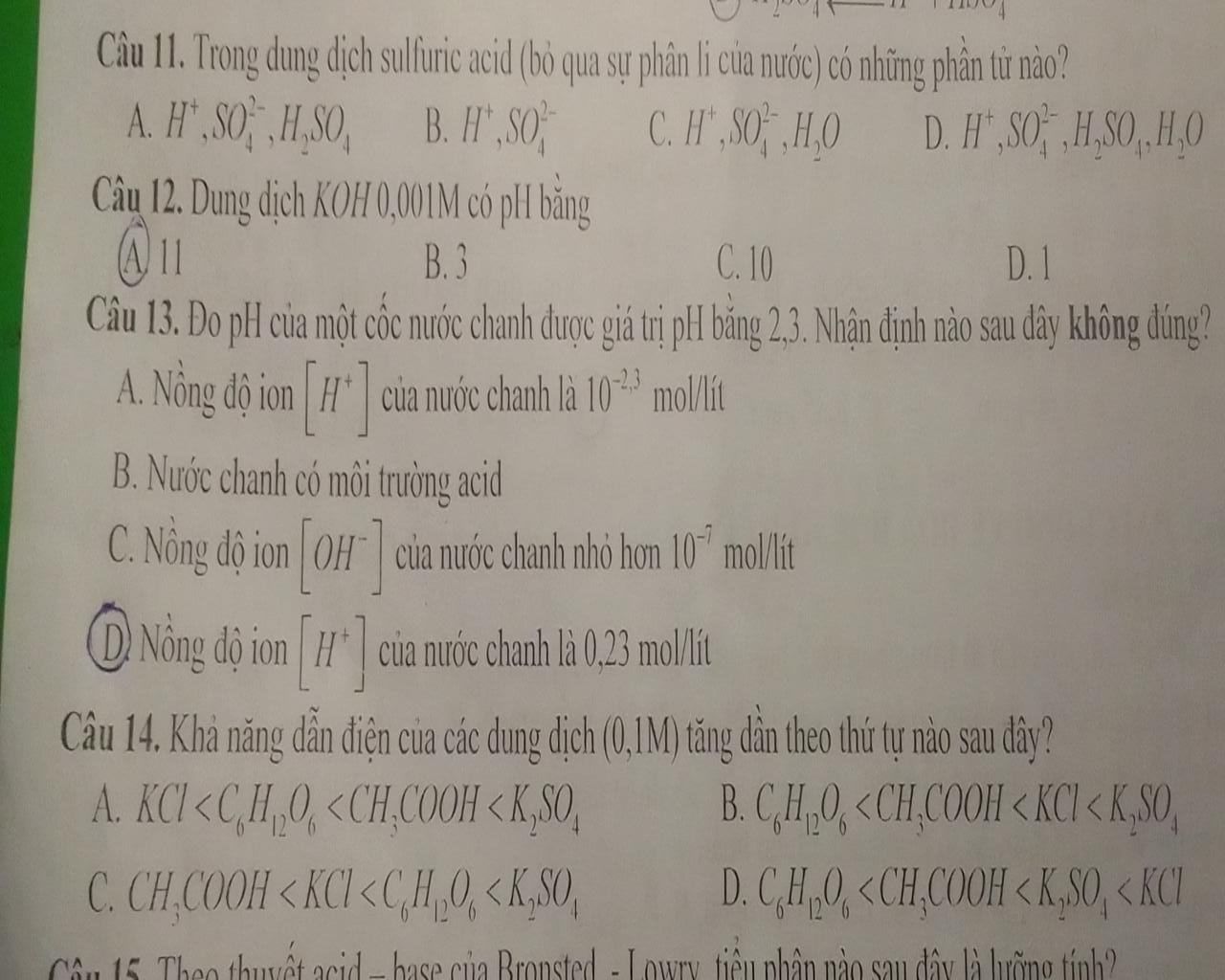 Câu 11 đề nói là bỏ qua sự điện li của nước mà bạn , chọn D