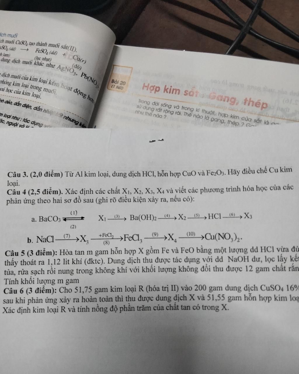 `(6)\ 4HCl\ (\text{dd đặc})+MnO_2\ (\text{r})->^{\text{đun nhẹ}}MnCl_2\ (\text{dd})+Cl_2\ (\text{k})+2H_2O\ (\text{l})`