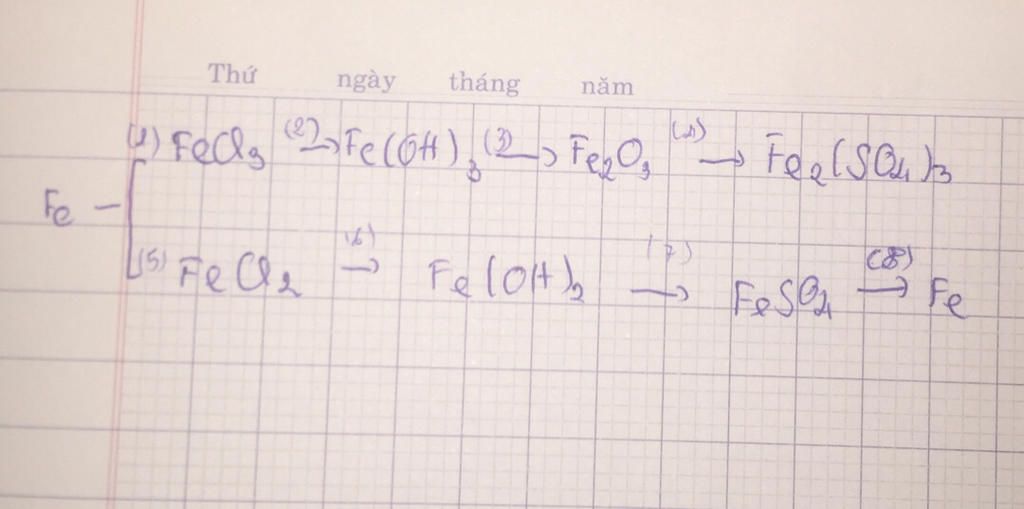 `(1)\ 2Fe+3Cl_2->^{t^o}2FeCl_3`