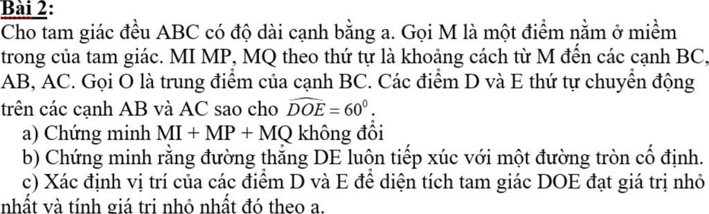 Cho tam giác đều ABC có độ dài cạnh bằng a. Gọi M là một điểm nằm ở miềm