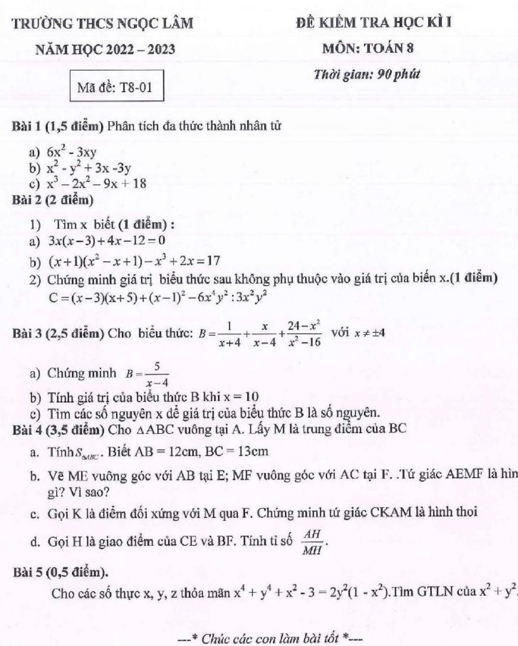 Bài 1 (1,5 điểm) Phân tích đa thức thành nhân tử