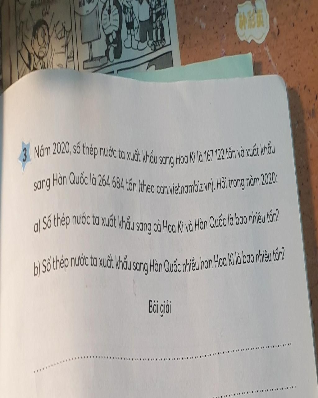 b) Số tấn thép nước ta xuất khẩu sang Hàn Quốc nhiều hơn Hoa Kì là: