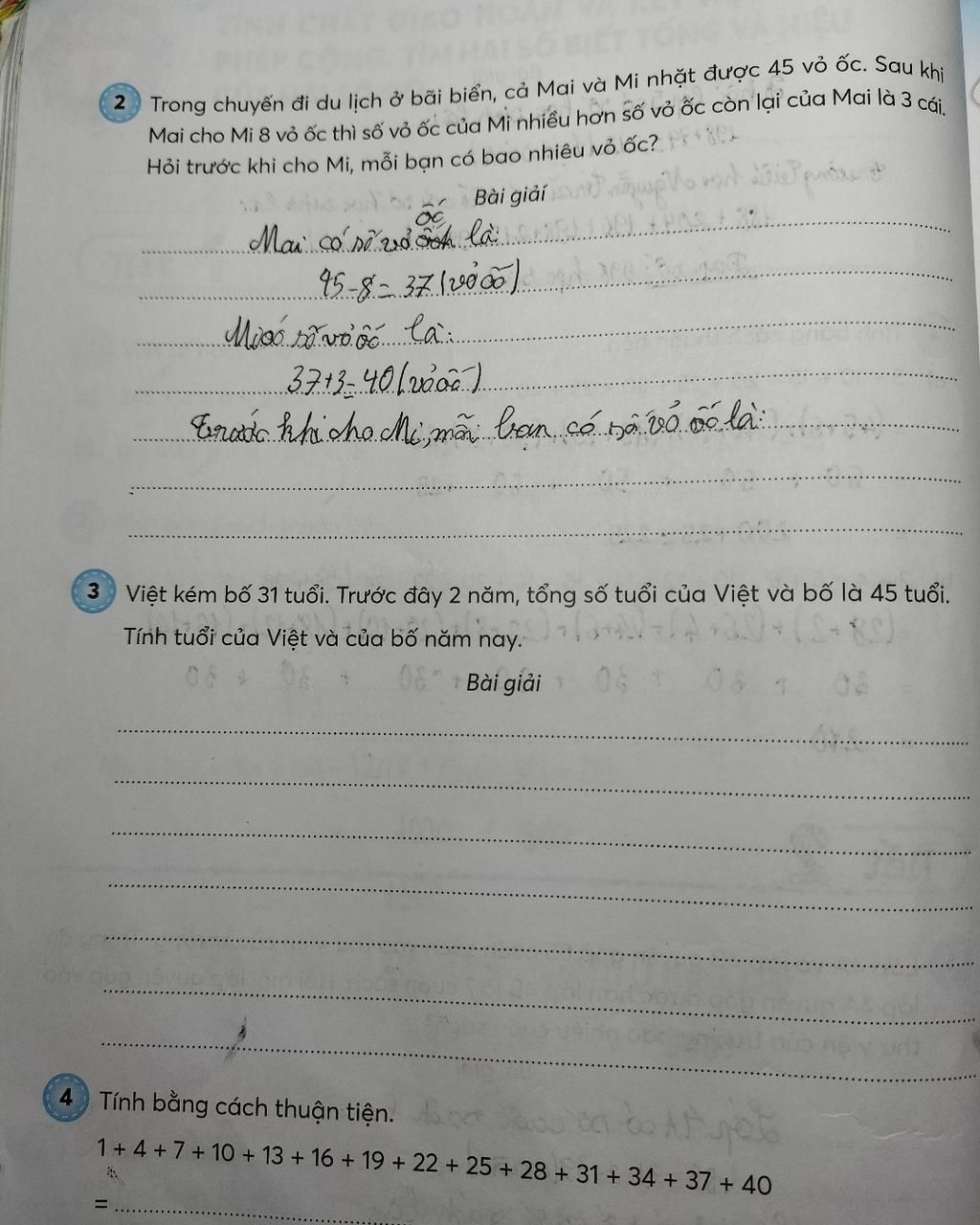 $\text{(45 + 31) : 2 + 2 = 40}$ (tuổi)