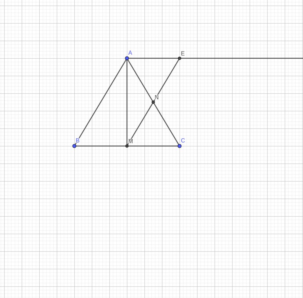 Bài 3: Cho ABC cân tại A, đường cao AM, N là trung điểm của AC. Từ A kẻ tia Ax song song với BC cắt MN tại E.