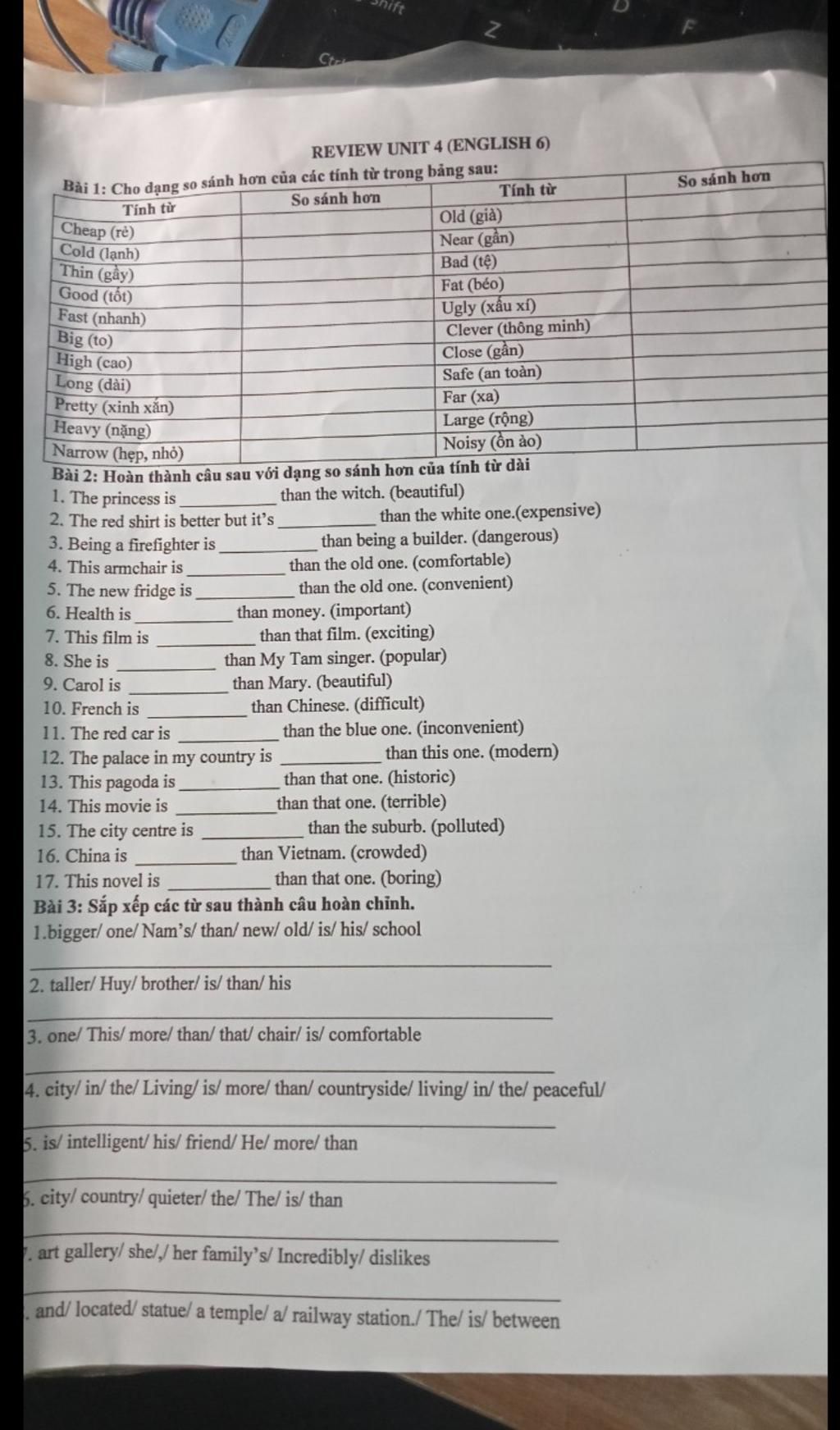 bài 1 với bài 3 là có cả tính từ ngắn mà e .... với lại e bổ sung + xem lại bài 3 câu 7 8 e nhé