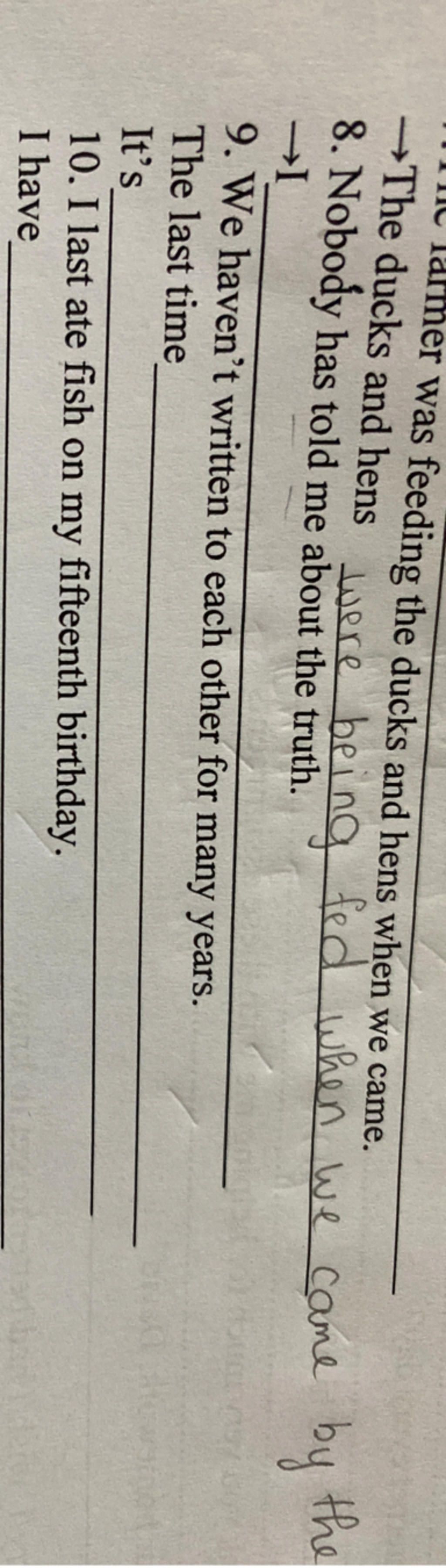 9. The last time we wrote to each other was many years ago.