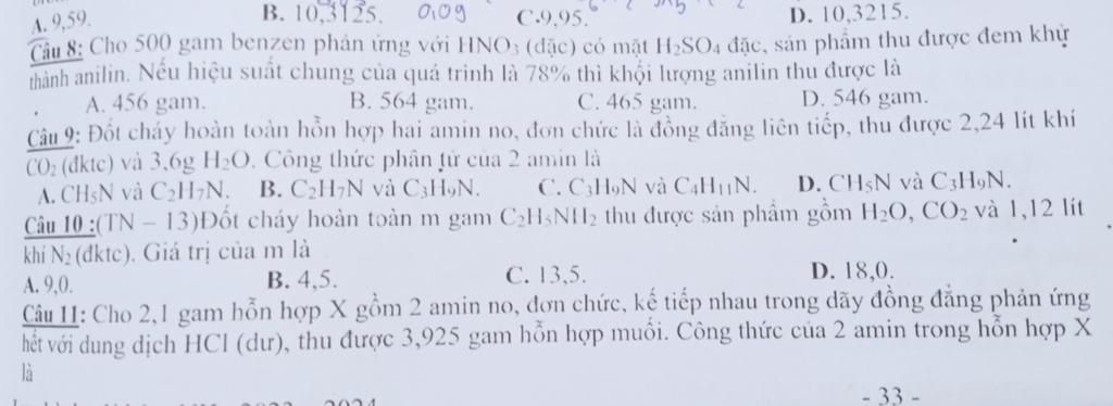 `=>` Hai amin là `CH_5N, C_2H_7N`