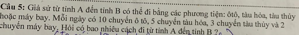 Câu 5: Giả sử từ tỉnh A đến tỉnh B có thể đi bằng các phương tiện: ôtô, tàu hỏa, tàu thủy