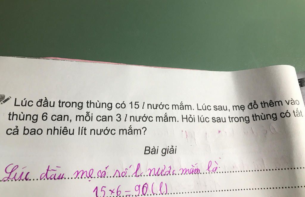 Số `l` nước mắm mẹ đổ vào thùng là: