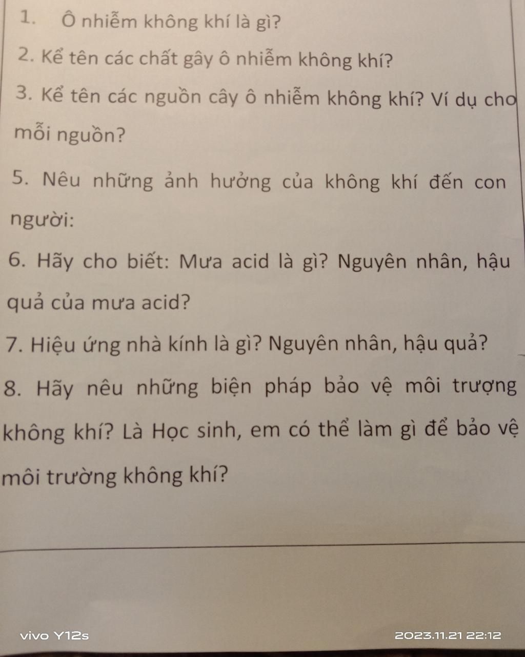 1. Một số chất gây ô nhiễm không khí như: