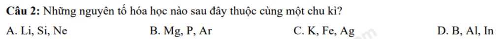 các nguyên tố `Mg , P , Ar` đều thuộc chu kì `3`
