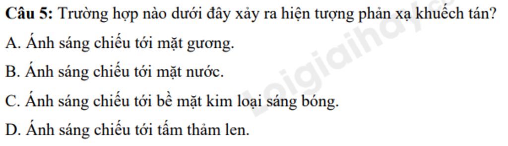 Câu 5: Trường hợp nào dưới đây xảy ra hiện tượng phản xạ khuếch tán?