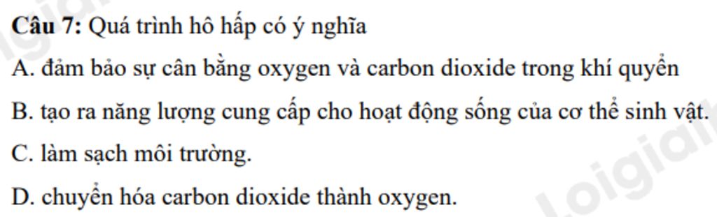 Câu `7:` Quá trình hô hấp có ý nghĩa :