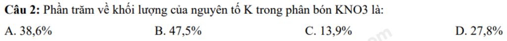 `KLPT: KNO_3` là `39+14+16.3=101a m u`