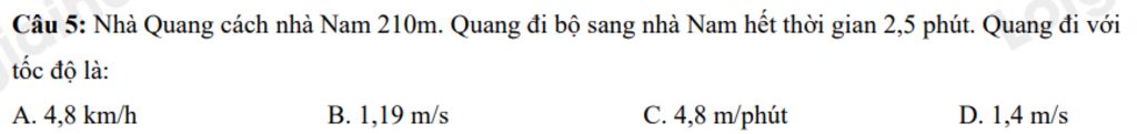 Quang đi với tốc độ là: