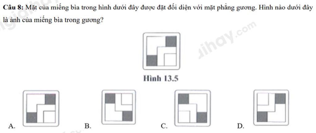 $\text{vì A,B,D không phải là ảnh của hình đã cho qua gương phẳng}$