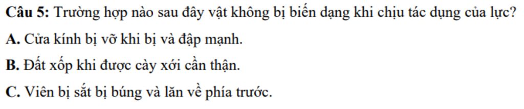 `→` Trường hợp biến dạng khi chịu tác dụng của lực là viên bi sắt bị búng và lăn về phía trước.