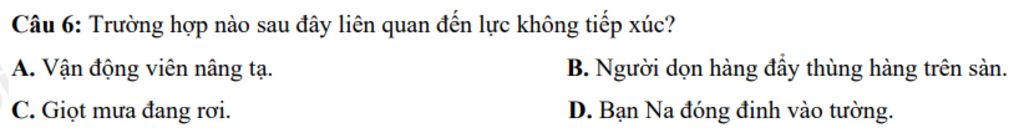 Trường hợp sau đây liên quan đến lực không tiếp xúc: