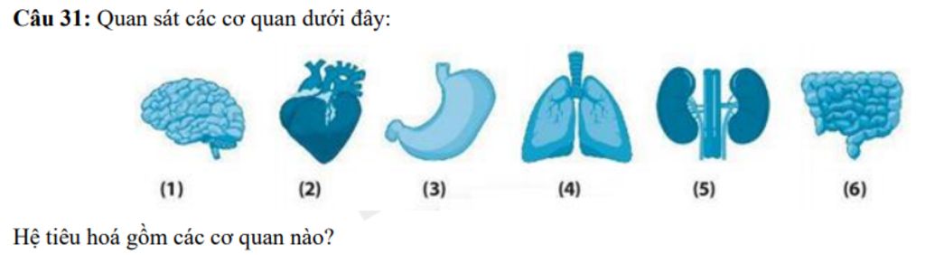 `@` Hệ tiêu hóa trong các hình trên gồm: dạ dày, ruột