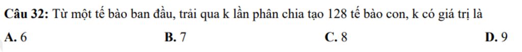 `=> 128 =2^7` tế bào con xuất hiện sau `7` lần phân chia từ tế bào gốc
