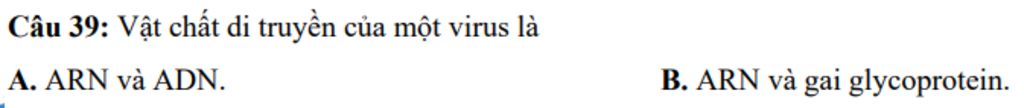 `@` Vật chất di truyền của một virus là ADN hoặc ARN