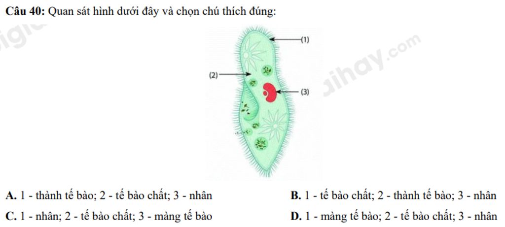 Câu 40: Quan sát hình dưới đây và chọn chú thích đúng: