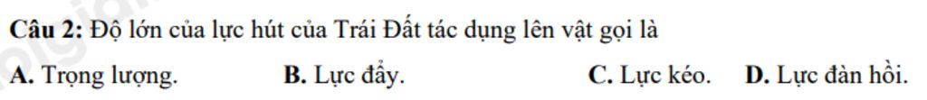 `=>` Độ lớn của lực hút của Trái Đất tác dụng lên vật gọi là trọng lượng