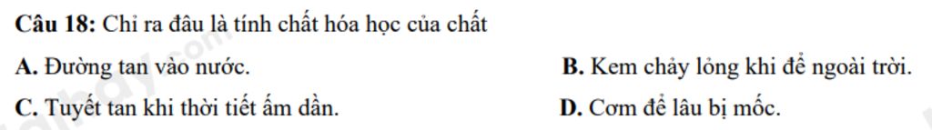 Câu `18:` Chỉ ra đâu là tính chất hóa học của chất :