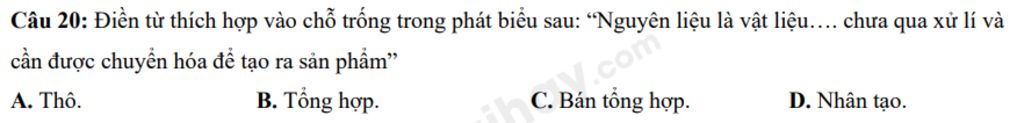 `→` Là vật liệu thô chưa qua xử lí và cần chuyển hoá để tạo ra sản phẩm.